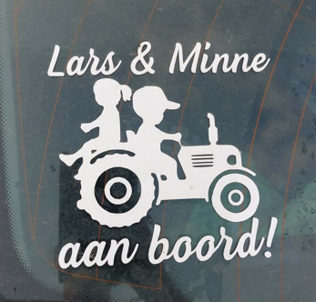 Autosticker 2 kindjes op oldtimertractor